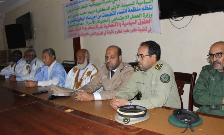 في إطار الأسبوع الوطني للمرأة الموريتانية المنظم تحت الرعاية السامية للسيدة الأولى الدكتورة مريم محمد فاضل الداه تنظم منظمة النساء المتطوعات من أجل بناء الوطن بالتعاون مع وزارة العمل الاجتماعي و الطفولة و الأسرة – محاضرة بعنوان الحقوق السياسية و الاقتصادية للمرأة و تكوين 4 فتيات متفوقات في ثانوية كرو كما تم تكريم ناشطة في المجتمع المدني بكرو